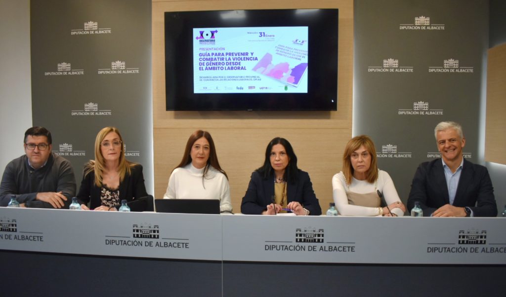 Como resultado de la colaboración y el trabajo coordinado entre instituciones y los agentes sociales y económicos de Albacete (CCOO, UGT, FEDA, Junta de Comunidades de Castilla-La Mancha, Diputación Provincial y Ayuntamiento de Albacete, desde sus respectivas Áreas de Igualdad y en colaboración con el Ayuntamiento de Hellín), se ha presentado la guía para prevenir y combatir la violencia de género desde el ámbito laboral editada por el Observatorio Provincial de Igualdad en las Relaciones Laborales, OPI AB.