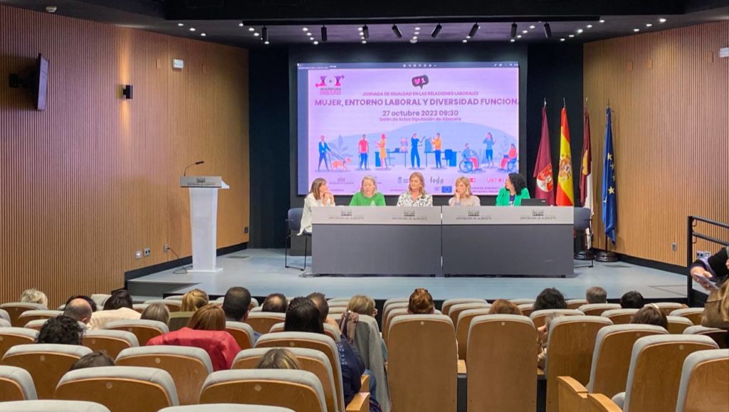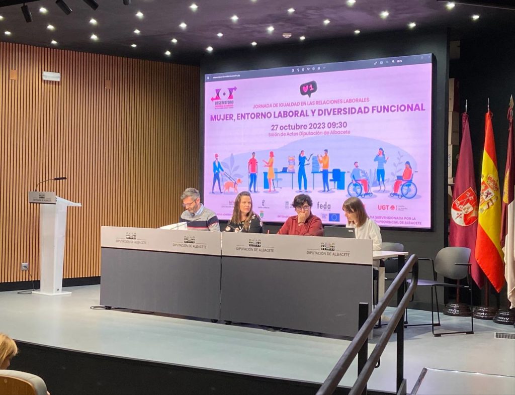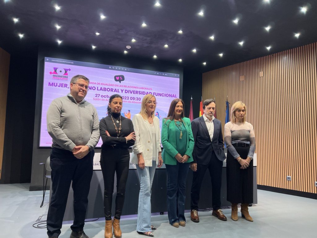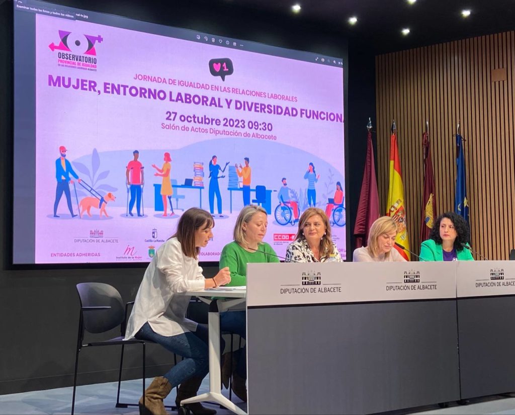 El Observatorio Provincial de Igualdad en las Relaciones Laborales, constituido por los agentes sociales CCOO, UGT y FEDA en colaboración con la Junta de Comunidades de Castilla-La Mancha, la Diputación Provincial y el Ayuntamiento de Albacete desde sus respectivas áreas de igualdad, sumando con sus entidades adheridas, el Instituto de La Mujer de Castilla-La Mancha y el Ayuntamiento de Hellín, ha organizado este viernes una nueva jornada formativa bajo el título ‘Mujer, entorno laboral y diversidad funcional’.